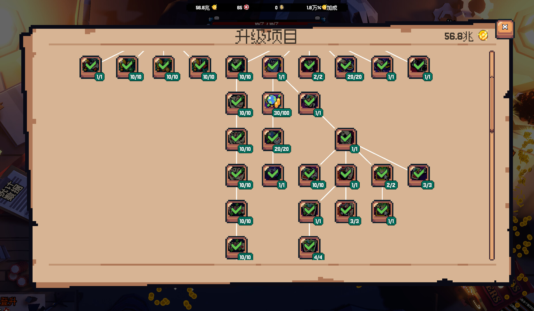 用这些筹码,购买真正毁天灭地的强大升级,开启新一轮的疯狂凑钱!